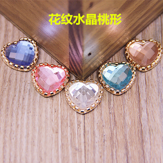 花紋桃形14MM水晶 手機美容 手工發飾花盤 鞋飾 DIY飾品配件