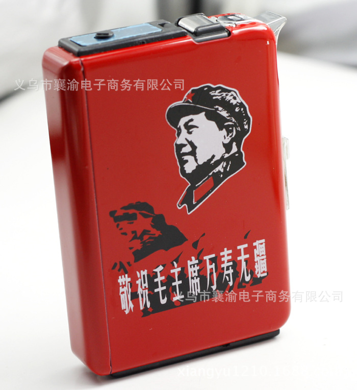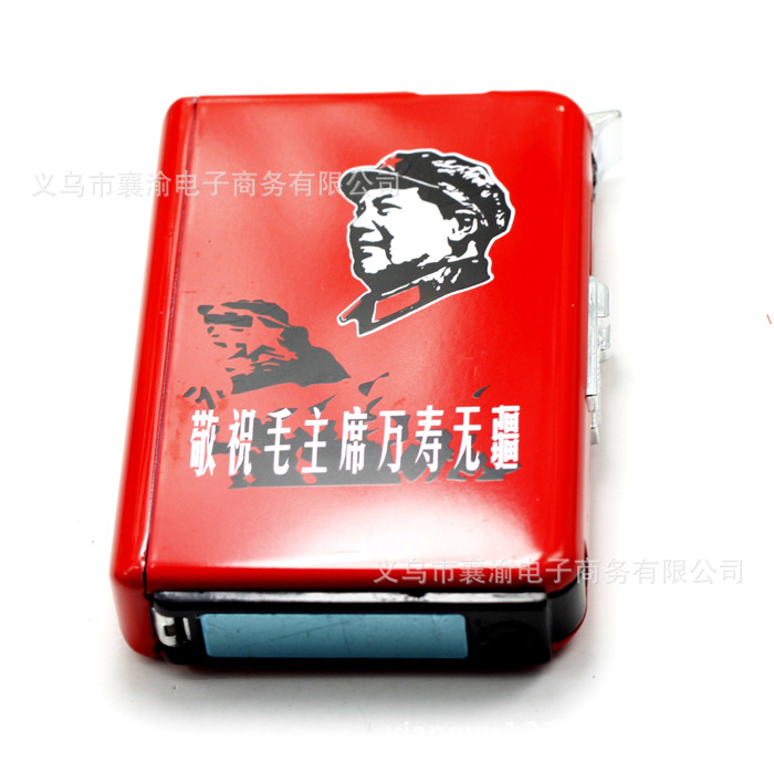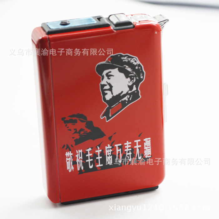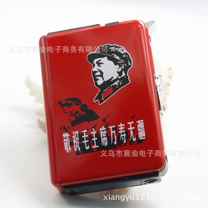 創意自動煙盒帶防風打火機促銷新款磨砂名人毛澤東 混批發