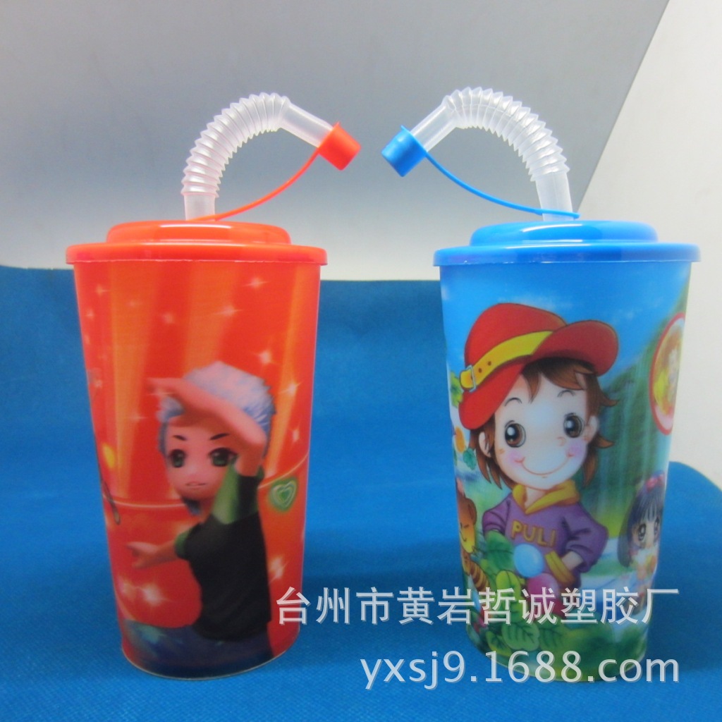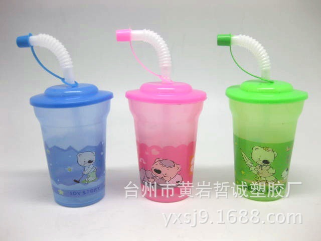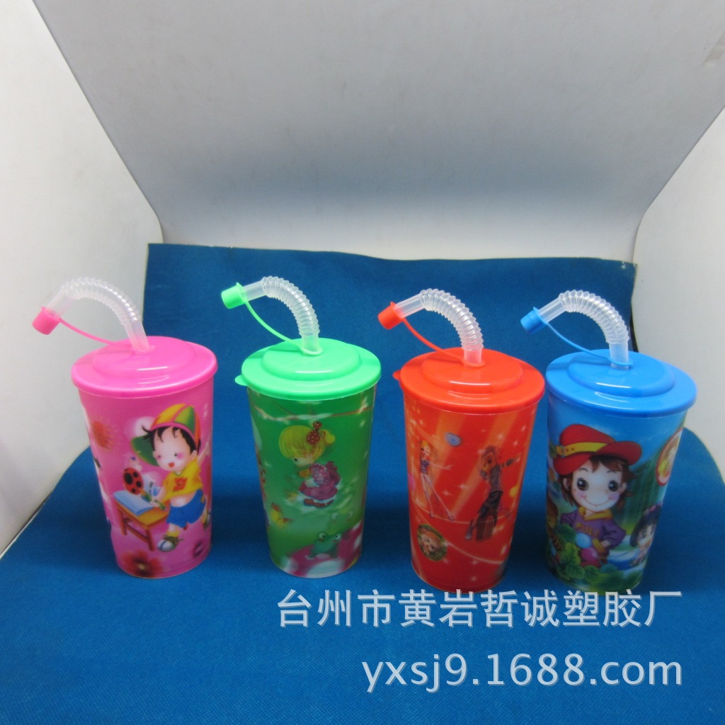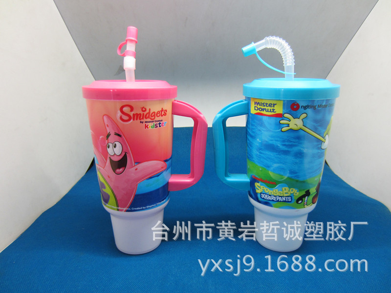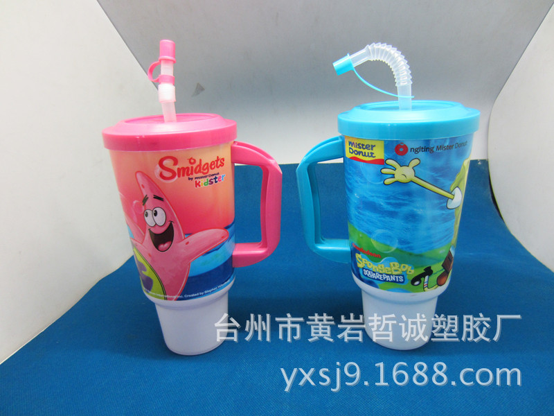 廠家直供經典疊疊杯 吸管塑料杯 可帶手柄 大容量兒童水杯 無毒