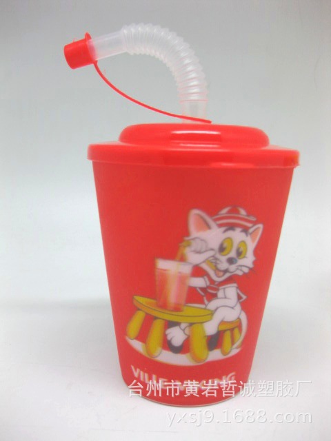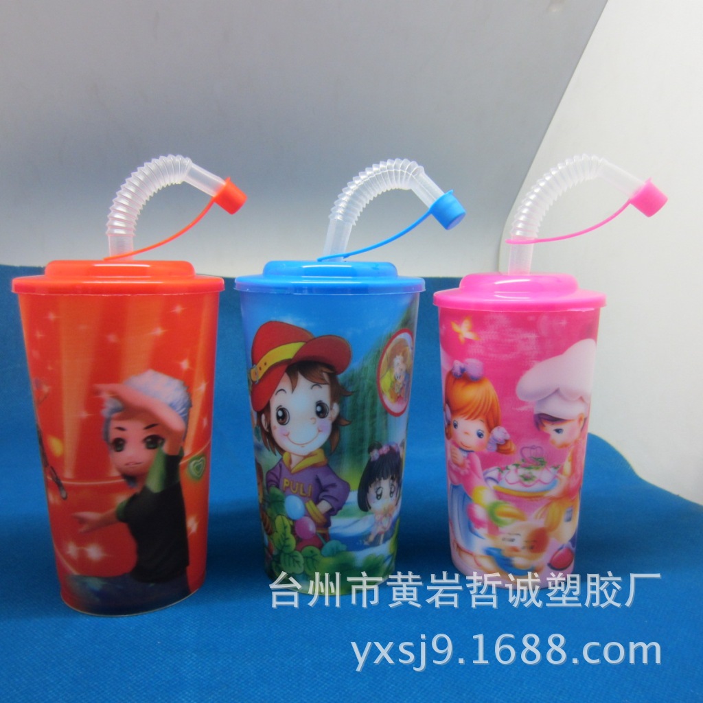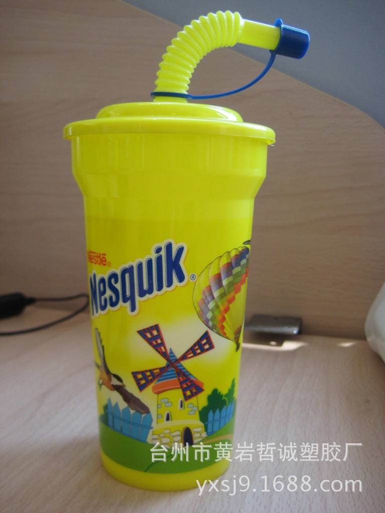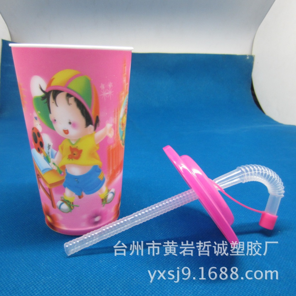 廠家直供經典疊疊杯 吸管塑料杯 可帶手柄 大容量兒童水杯 無毒