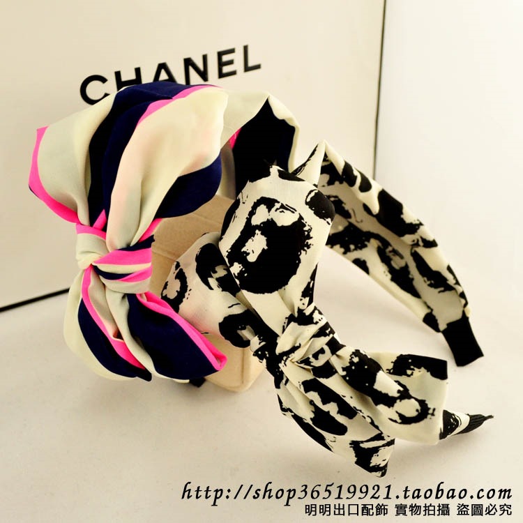 韓國訂單波西米亞風寬邊緞帶綢布藝頭箍韓版超大蝴蝶結寬發箍