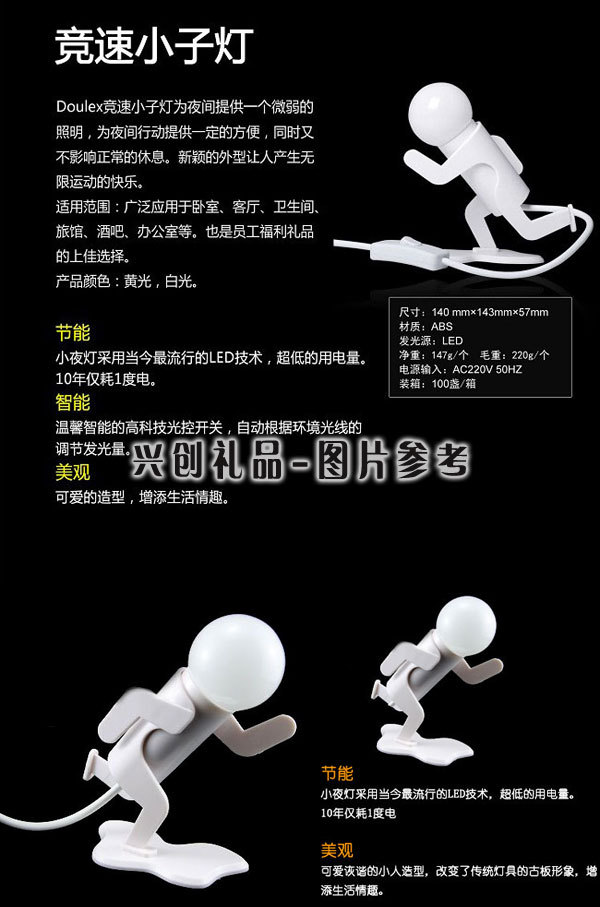 方便實用的Doulex跑步小人LED小夜燈,能使你在晚上有個溫馨的室內環境,用電很少,利用LED發光二極管更加省電,使用中有下列特點: