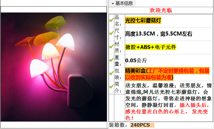 2014熱銷創意禮品 LED節能創意光控感應七彩小夜燈