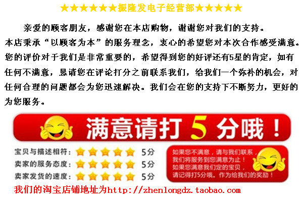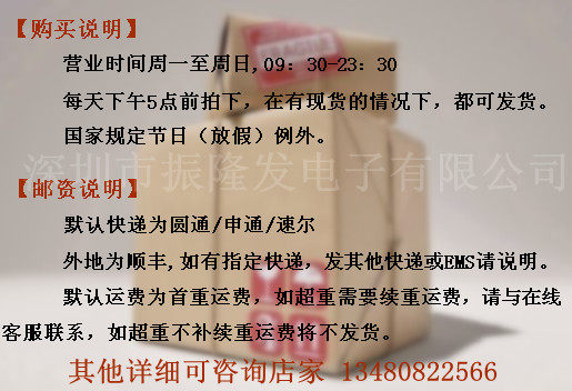 電子產品由于生產廠家的批次不同、IC版本的升級、會出現您所購買的圖片上的寶貝和您收到的實物寶貝有所不同,比如文字、型號后綴、圖標、生產廠家,但是功能、質量沒有改變,這些情況都是非常常見的現象,相信技術人員都明白這些道理。所以請親一定要認準確再拍哦!本店如果非電子質量問題一律不可退貨哦!