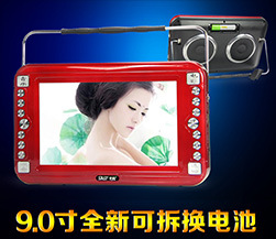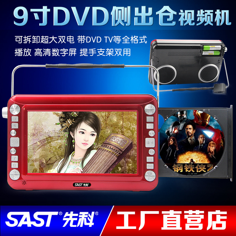 先科9.0寸帶DVD側出倉可拆電池多功能視頻機擴音器高清看戲機批發