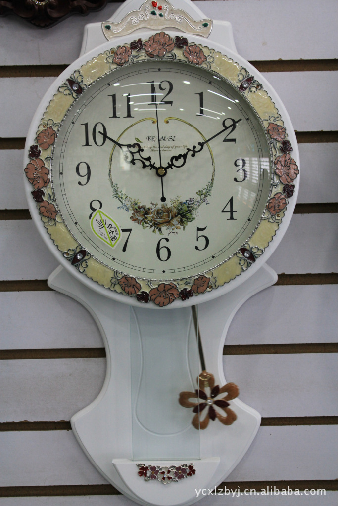 克勞斯高檔歐式田園實木掛鐘 創意時尚簡約搖擺時鐘靜音石英鐘表