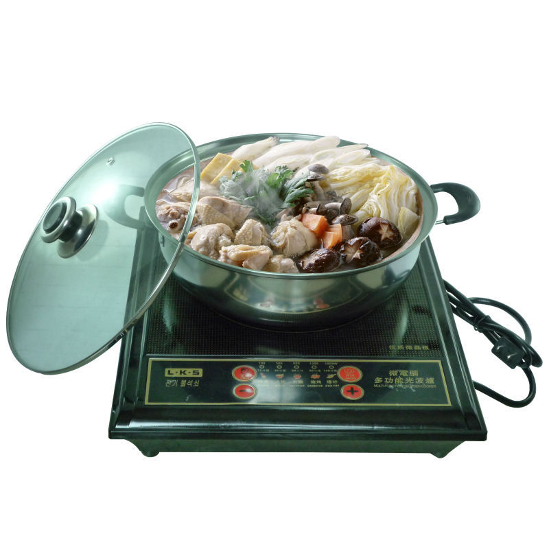 遠紅外線光波爐,除代替日常的電磁爐煮、燉、熬、涮等常用功能之外,針對目前一些劣質金屬器皿重金屬超標情況進行革新,適應任何耐高溫的陶瓷器皿,防止重金屬的攝入,健康有保障;特別設計了燒烤功能,并配備了燒烤架,讓您的日常生活充滿情趣;同時,針對一些地區,冬天寒冷、潮濕,特設計了遠紅外線取暖功能,掛在家居臥室、廚房客廳,功率及時間隨意設定,紅外線波長接近陽光,更為自然、實用………