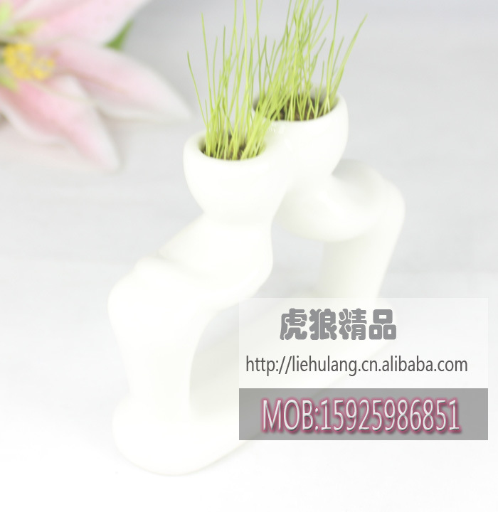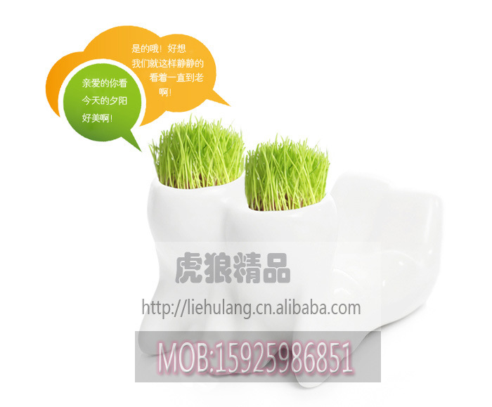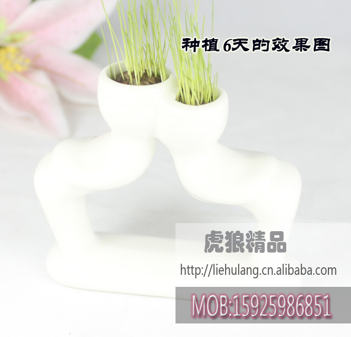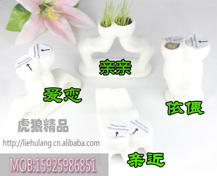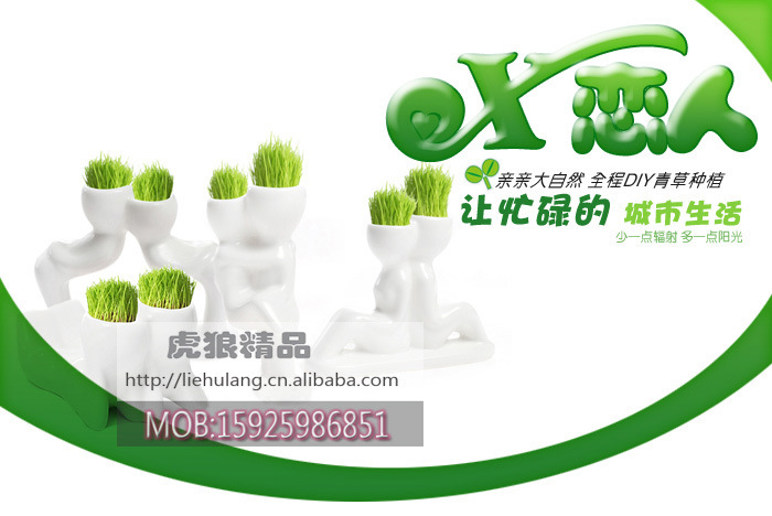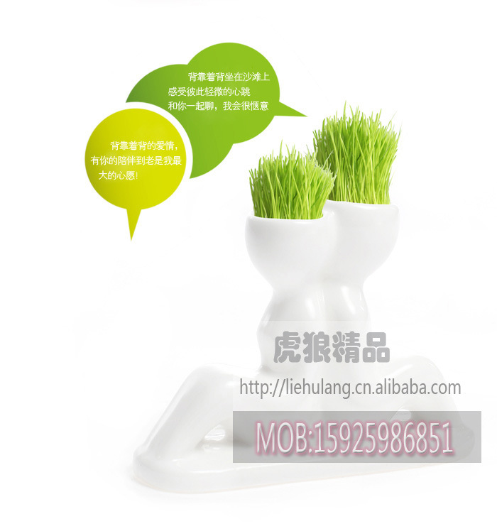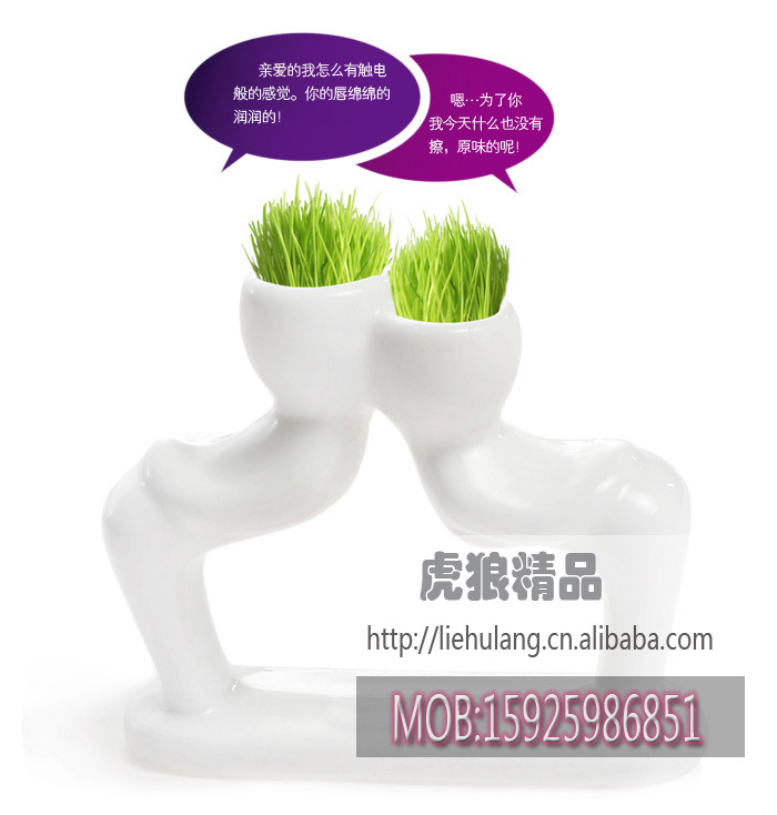 迷你植物盆裁 陶瓷小白人戀人2代-親近 情侶禮物 辦公禮品