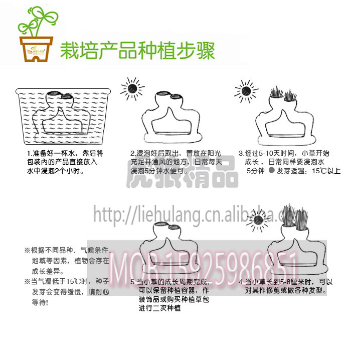二、擦干“小白人”的表面耐心等待5-8天后,小白人的頭部就長出青草了,請每日澆水。