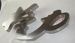 三)下料:把字稿直接貼在鈦金字板上,也可把字稿摹在鈦金板上,字稿四周適應地留出余量,否則字變細,變瘦,然后用電剪子剪成平字