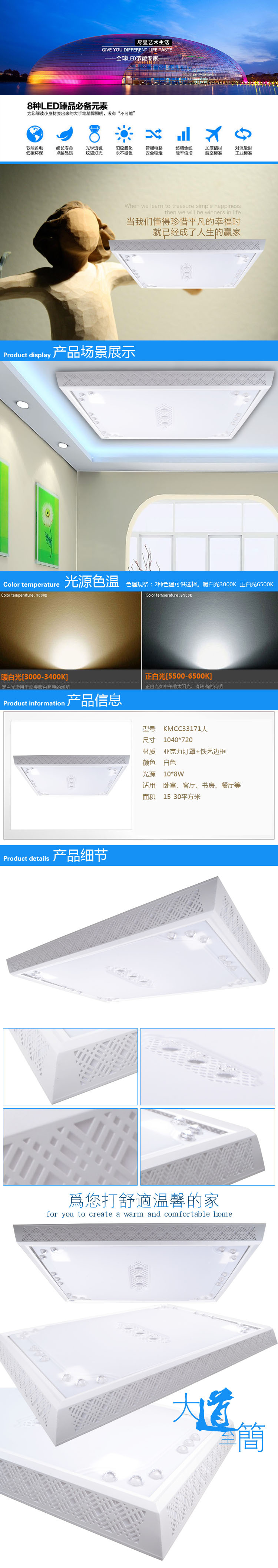 大號1040*720mm10*8W,中號720*720mm6*8W,小號570*570mm6*6W(W)型號