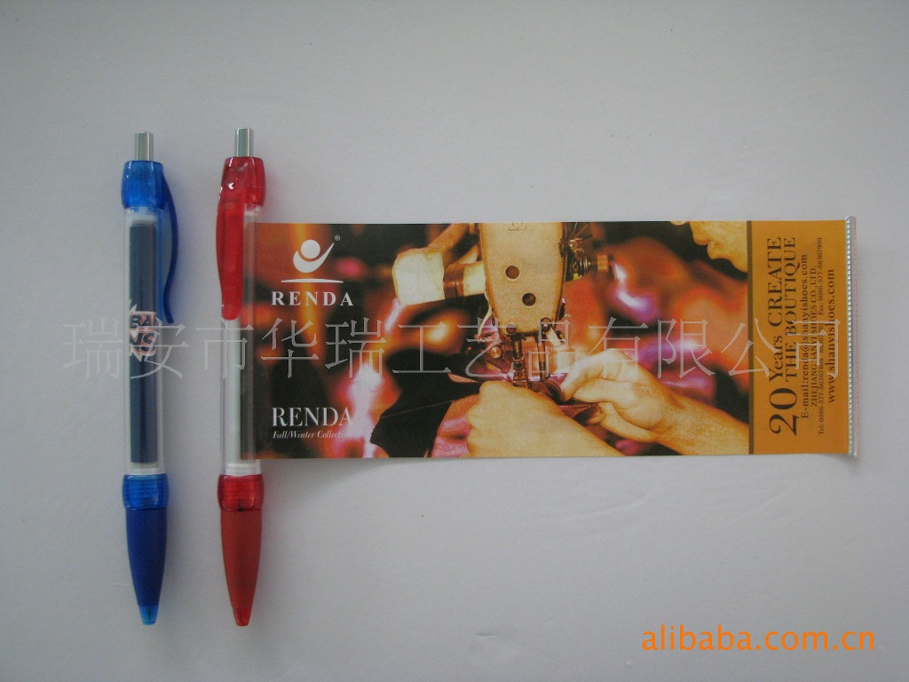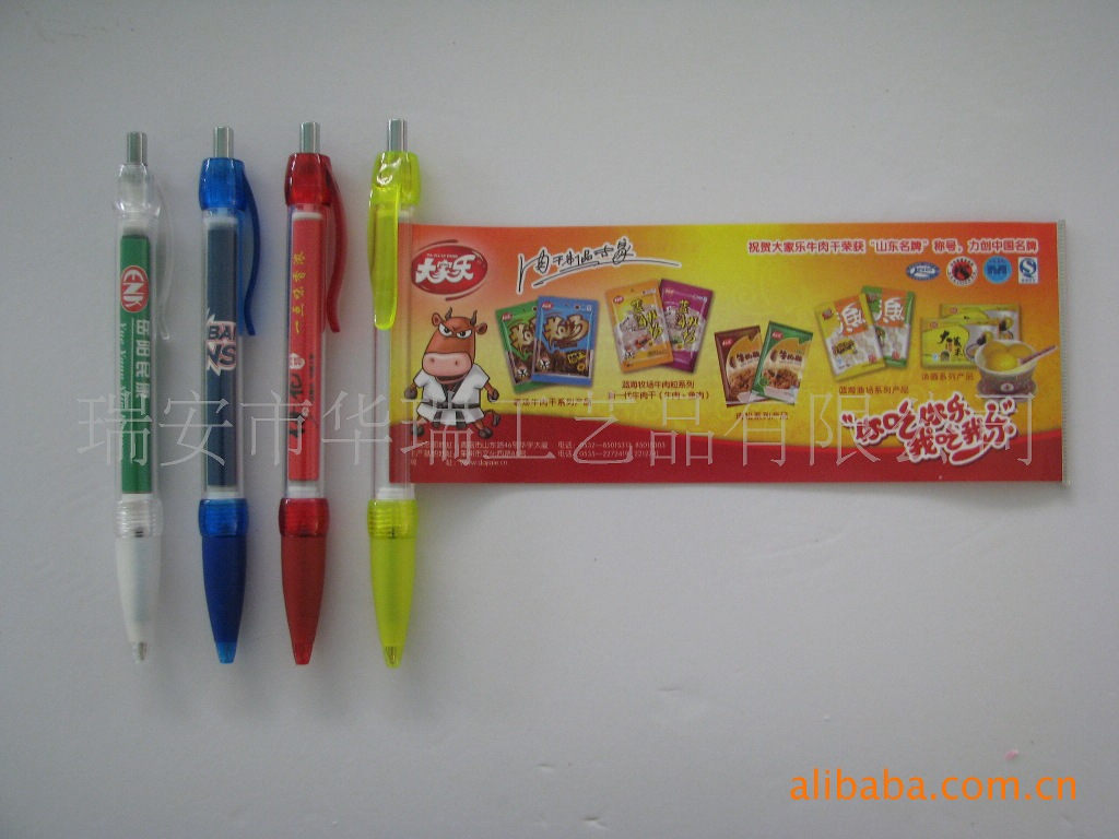 瑞安華瑞工藝禮品有限公司生產的廣告拉畫筆,設計新穎,款式多樣化。質量上乘,筆芯書寫流暢,且價格公道。與日本,美國,英國等一些國家部分客戶建立了長期合作關系。也曾與國內些知名品牌多次合作過,并受到好評!歡迎廣大新老客戶的垂詢和惠顧。我們的主題廣告是:一只僅僅值幾毛錢的筆,也能為您的商品順利流入市場做推廣打下良好基礎。