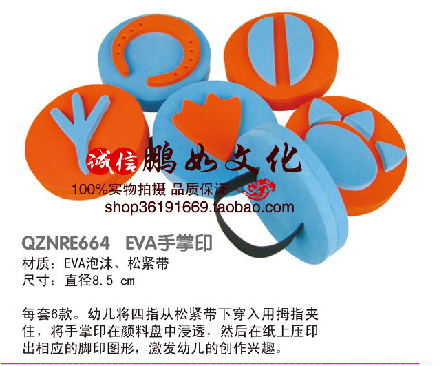 【使用方法】:將印章背面松緊帶套在手上,然后把圖案面泡在顏料里, 少量浸透即可, 然后就可以在紙上壓印出相應的圖案了 。