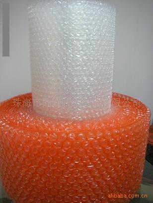 氣泡膜氣泡膜又稱氣墊膜,泡泡膜,氣泡紙等.是用于包裝填充的一種防壓防潮防震的化工產品.   主要規格有:60cm寬,110cm寬,140CM寬。   單位面積重量:30g-130克/平方米   按原材料又分為:優質全新料(色澤白亮),再生料(回收氣泡膜等再加工制成,因含雜質,顏色偏暗)。.   【產品性能】氣墊膜,又稱氣泡膜,是采用優質聚乙烯樹脂加工而成,也是當前普遍使用的一種包裝材料,用途廣泛。由于氣墊膜中間層充滿空氣,所以體輕,富有彈性,具有隔音,防震防磨損的性能。此產品可替代發泡塑膠顆粒填充物之類的防護用品,為電子產品、化妝品、音像CD等賣家的防護包裝。