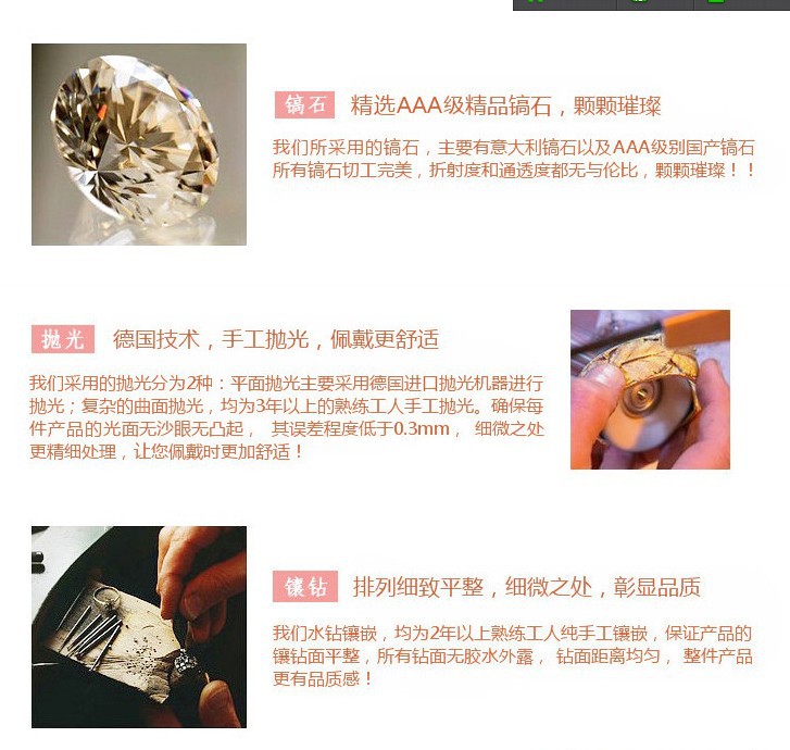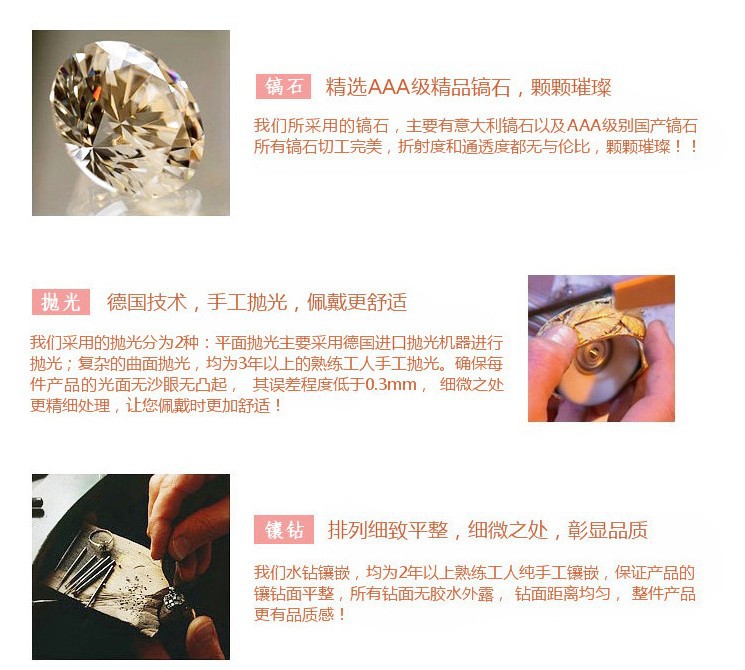 三:鑲鉆類產品采用鋯石,奧鉆,捷克鉆,完美鑲嵌,鉆石般的閃亮效果.