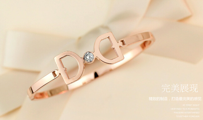 來自星星的你同款手鐲 鈦鋼玫瑰金鑲鉆女款甜美蝴蝶結手環C24