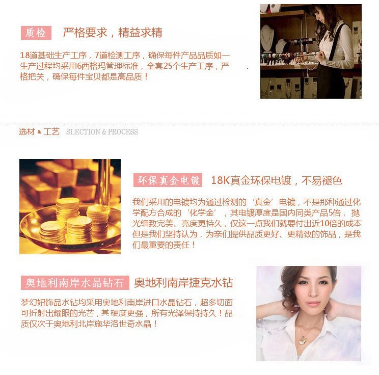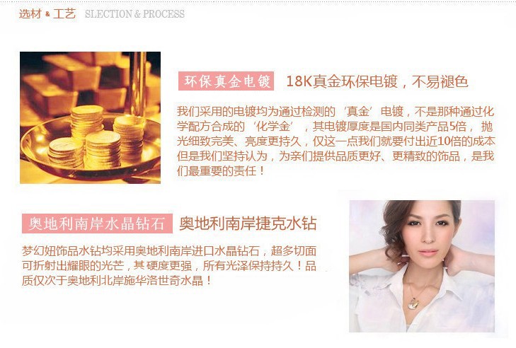 一:店內寶貝采用超厚18k真金環保電鍍,不易褪色,電鍍厚度為國內同類產品的5倍,僅這一點,我們的成本就要多出10倍的。