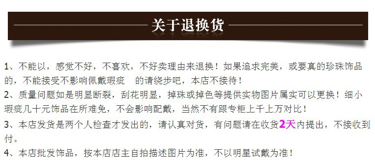 4、本店批發飾品,按本店店主自拍描述圖片為準,不以明星試戴為準!