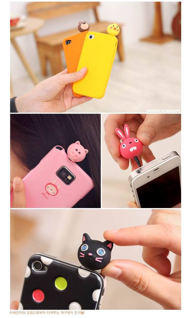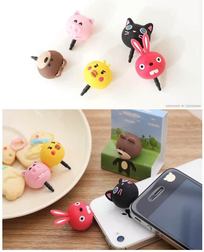 韓國 可愛卡通動物 蘋果iPhone4 4S HTC通用手機 耳機防塵塞 配件