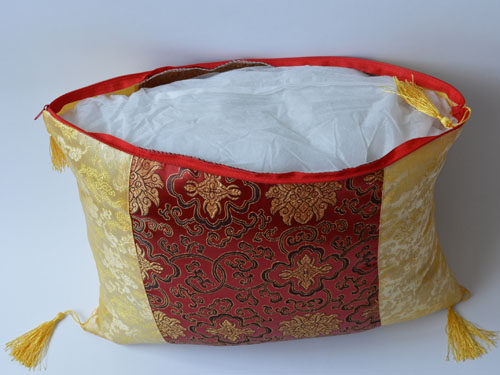 錦緞面料門幅一般實際是71厘米,所以超出寬度的要求時,套子是兩色拼接設計,保持美觀和亮麗。