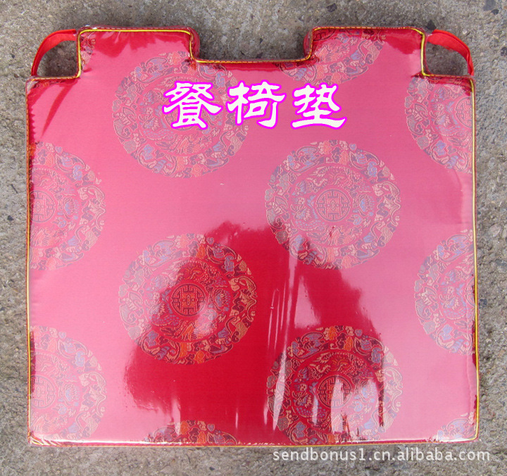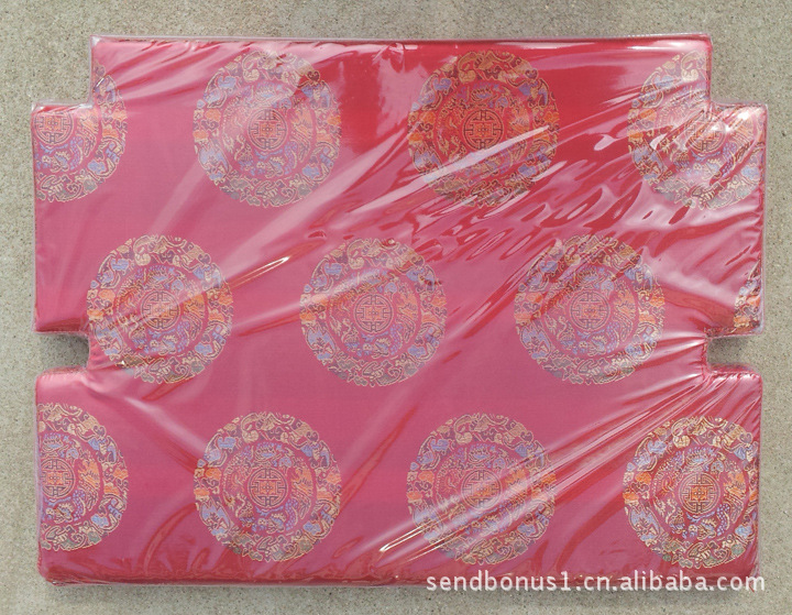 坐墊面料:織錦綢緞。圖案極富仿古韻味,以壽字圖案為主,是實木仿古座具的理想伴侶。