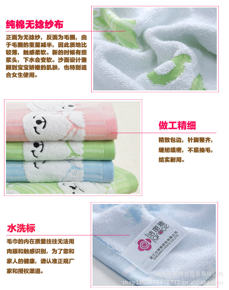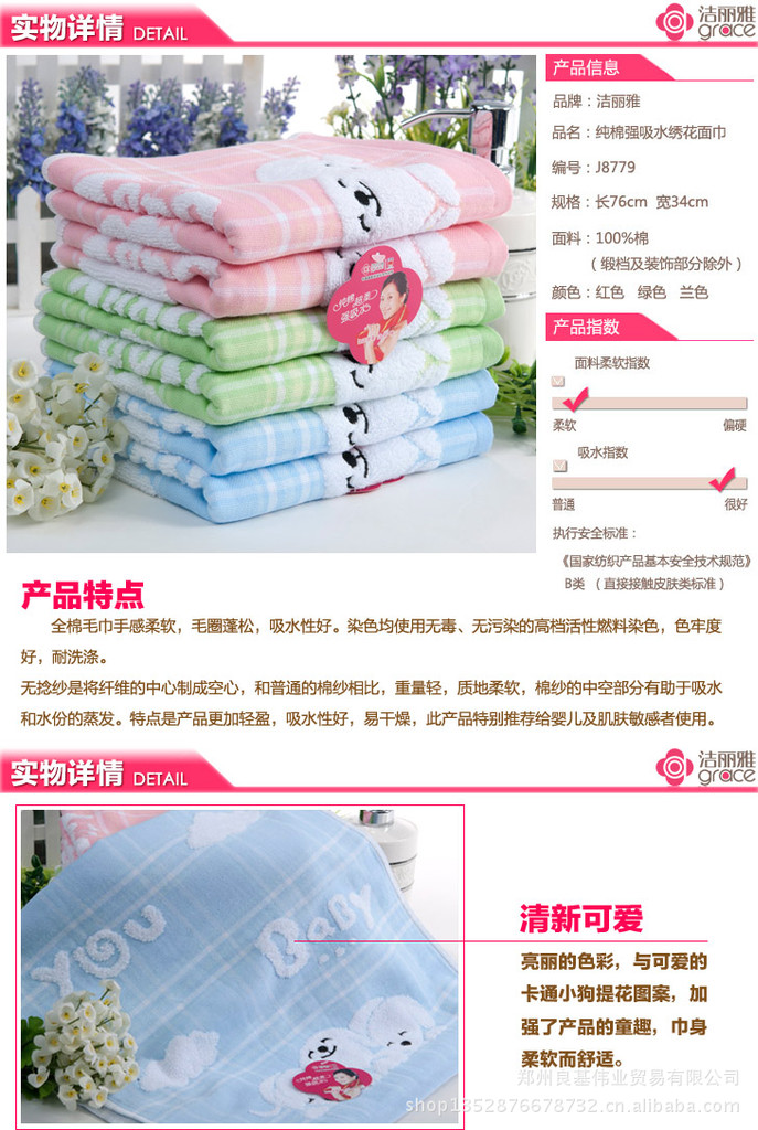 潔麗雅純棉毛巾批發 8779A強吸水特柔繡花面巾 卡通【一件代發】