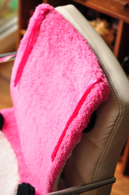 超萌呢~已經坐上了 哈哈~ 背面有繩子 還可以系在椅子上 當靠墊哦