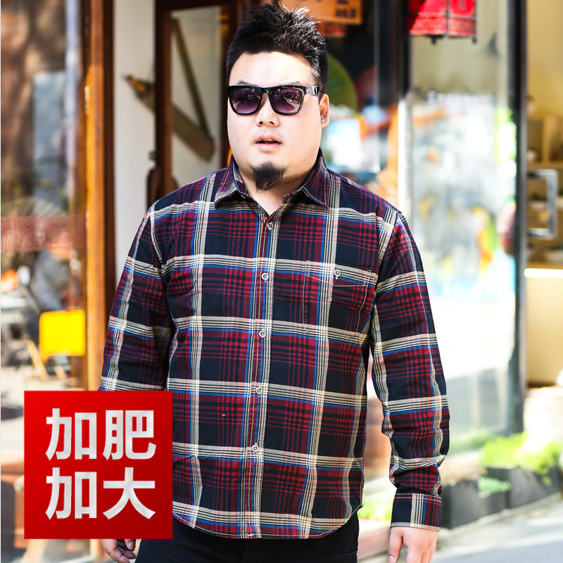 現貨批發加厚春秋冬款男大碼格子襯衫寬松胖人大號男裝純棉襯衣棉
