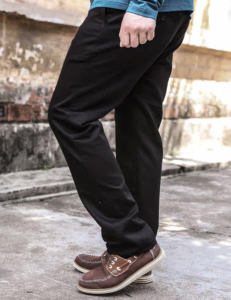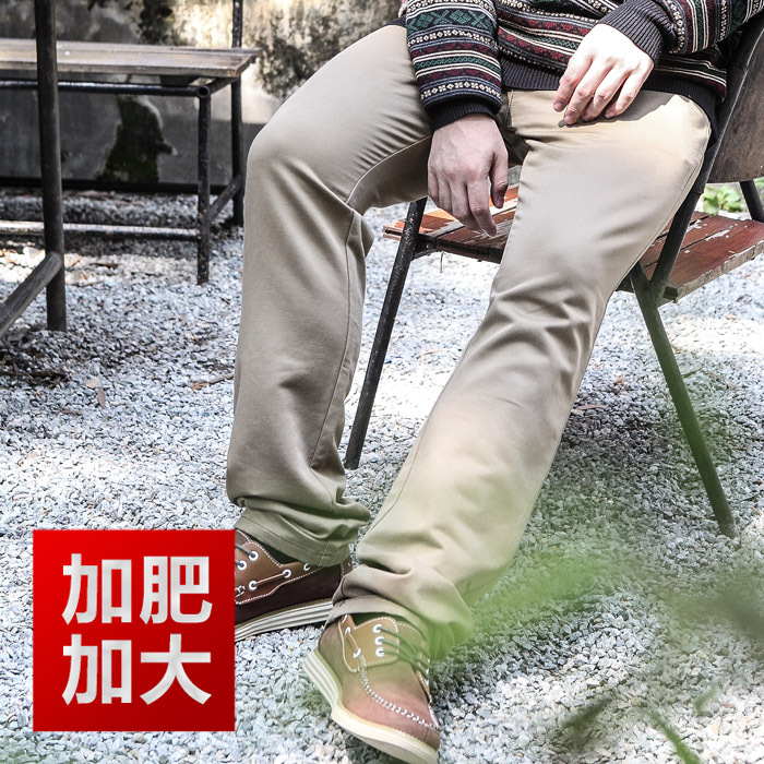 現貨批發特大碼彈力休閑褲厚料棉純色寬松大號胖人商務男裝直筒褲
