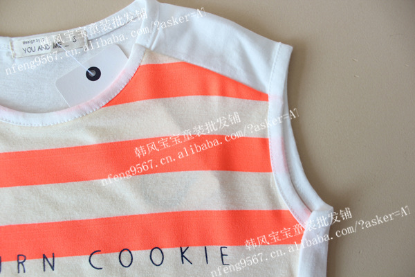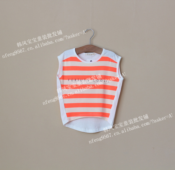 清爽一夏!韓版外貿童裝 熒光色 純棉條紋工字背心 4色