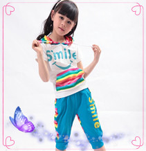 2013新款韓版 兒童裝女童寶寶夏裝 笑臉彩條休閑運動套裝