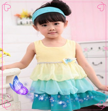 2013夏季 時尚潮流無袖繽紛雪紡蛋糕連衣裙 韓版女童