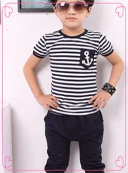 童裝 男童夏裝 2013新款 韓版 迷彩短袖T恤 哈倫褲 運動套裝