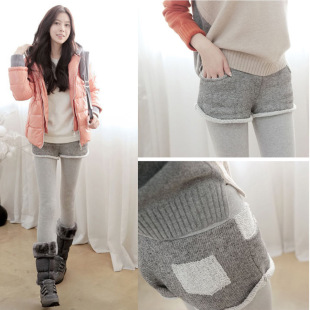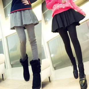 秋冬裝韓版外穿加絨加厚字母假兩件打底褲裙褲顯瘦女士九分褲批發