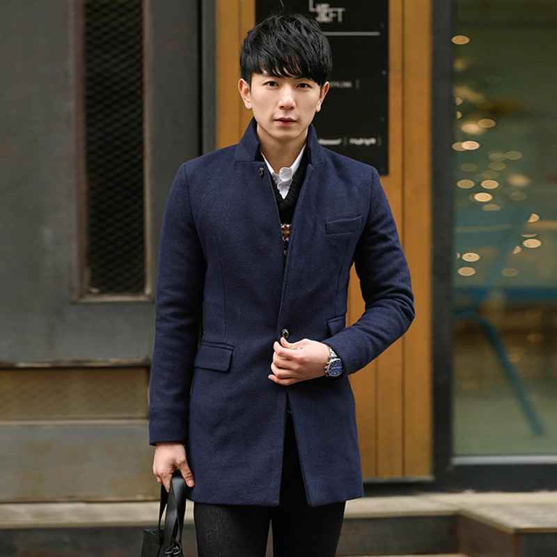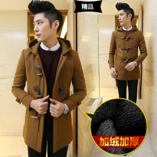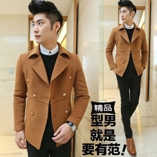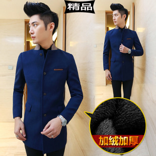 ¥153.00精品秋冬新款韓版修身男士中長款加厚立領羊毛呢子大衣男式外套