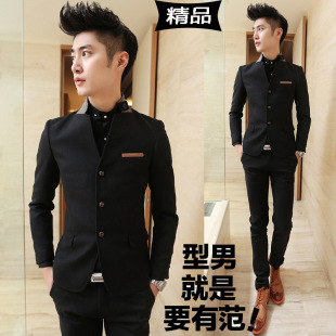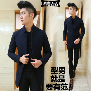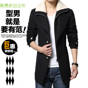 廠家直批2014新款秋冬韓版修身中長款外套 11促銷立領風衣男裝