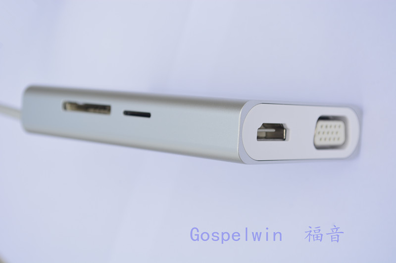 借一個小小的Type C接口可擴展出8個接口,其中包含:USB 3.0*2接口(理論上可達5Gbps傳輸速率)、RJ45接口(連接千兆網下載文件視頻暢通無阻)、HDMI接口(4K高清輸出)、VGA接口(1080P高清分辨率)、SD卡槽+TF卡槽(數碼相機、手機、閃存盤等存儲卡,大卡小卡都適用)、Type C接口(PD快充,讓電腦時刻有電)。