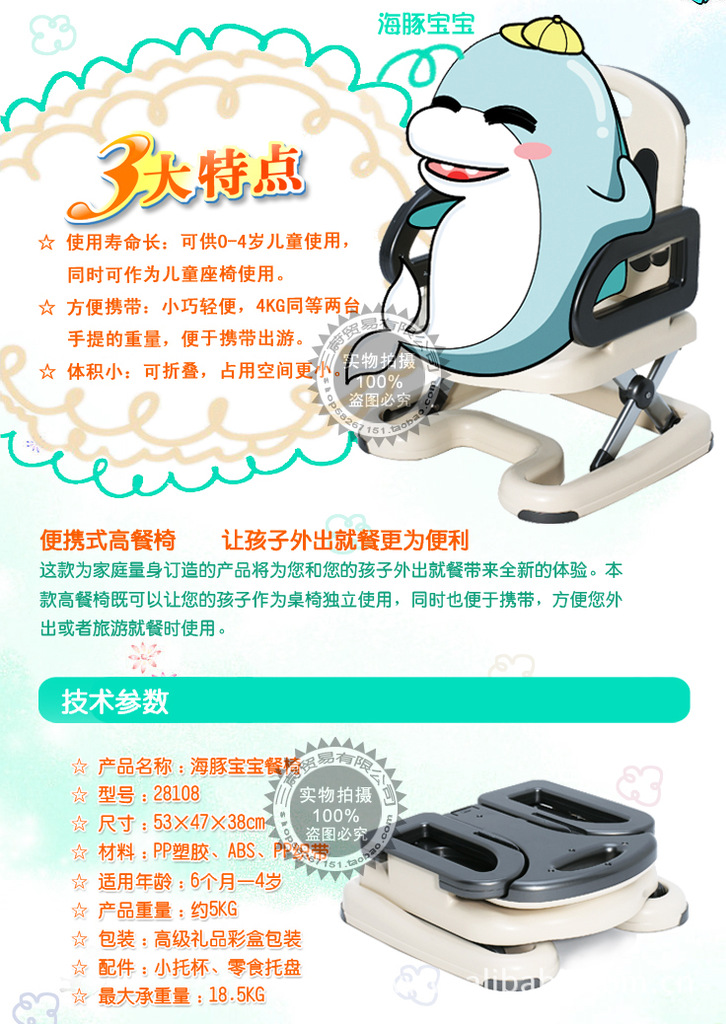 海豚寶寶可調式嬰兒餐椅功能特點: