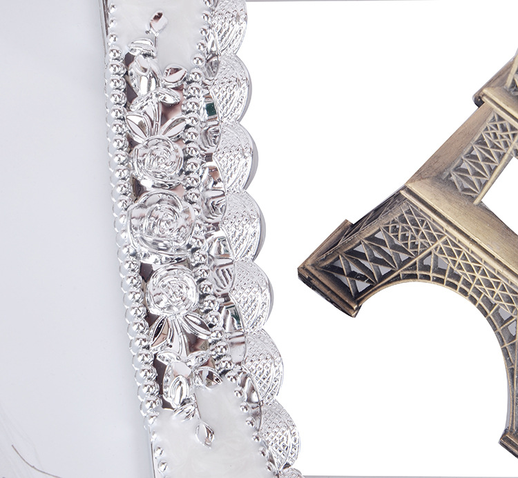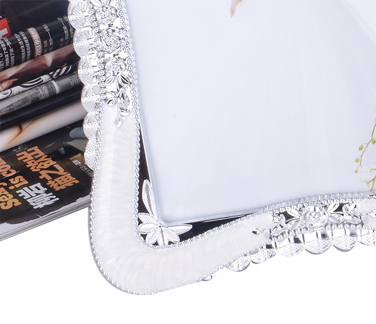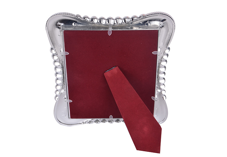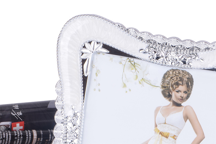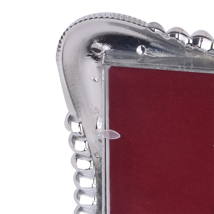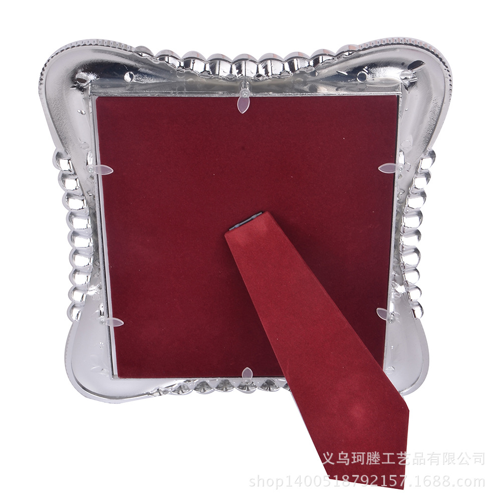 產品特性:此款采用環保ABS材質,高仿合金相框,銀電鍍,用上好的滴油彩繪仿貝殼文,表面更亮!背面采用密度板酒紅色包絨更顯高檔,使枯燥的家居生活增添一分時尚的氣息,是相框中的“高大上”。