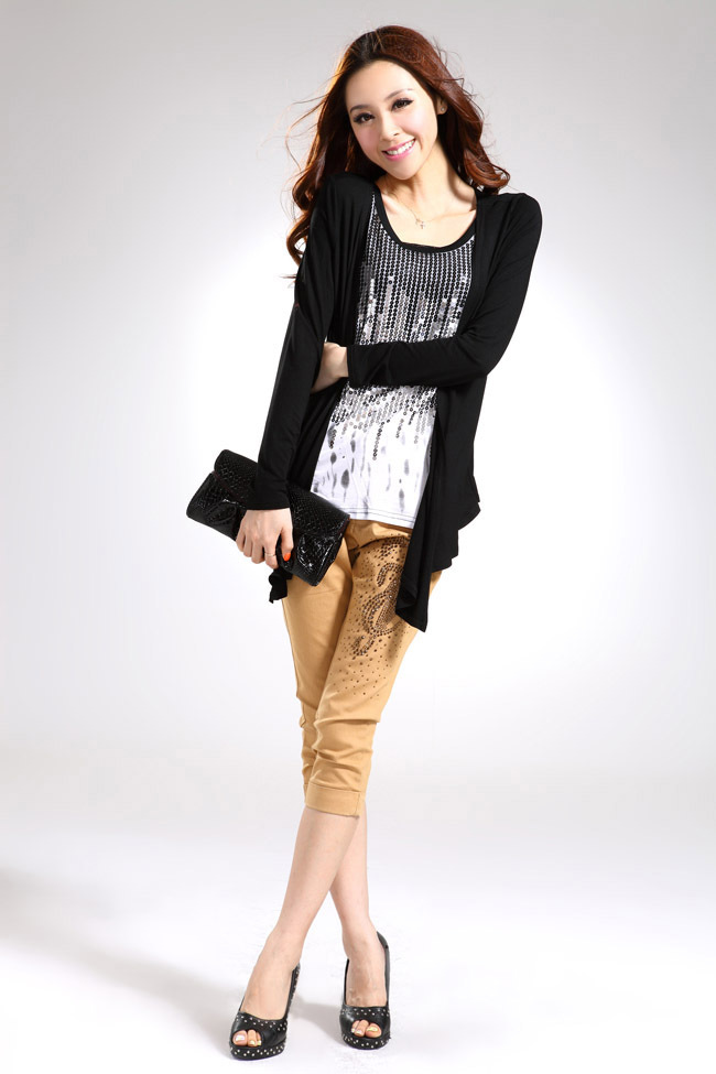 款式說明增長外披,衣門襟垂墜感極好,面料手感柔軟舒服,做工精細其他說明女人在行動,把握夏天將眼球聚焦在你身上,混搭麗人裝,散發魅力必勝法寶哦。忙碌工作裝是你施展風采的好時機。今年大熱的垂墜感增長外披、腰帶,簡單單品讓你熠熠生輝哦……