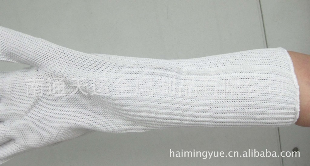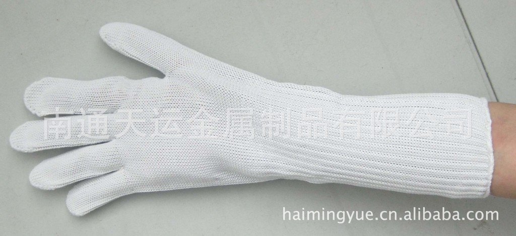產品性能:采用高強滌綸包裹多股鋼絲線,然后編織手套,整個手套的每個部位都有鋼絲線。