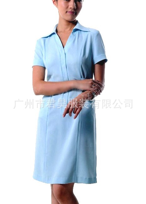 定做美容服:提供淡藍色V領美容服連衣裙定做,品質保證