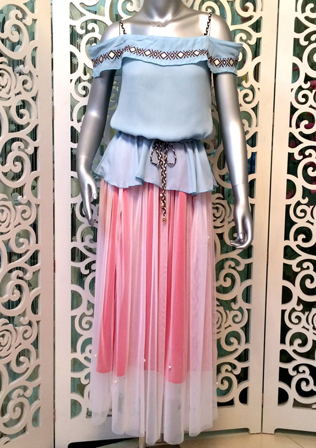 上衣面料:淡藍色韓國定制復絲麻