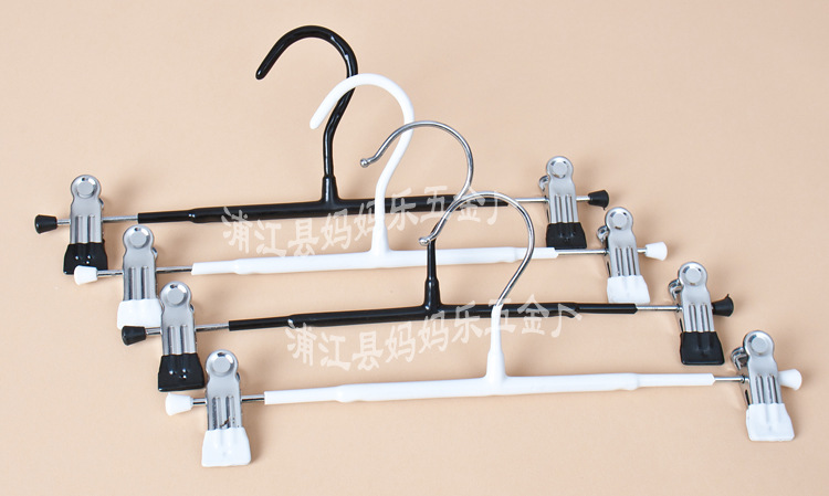 目前我廠產品主要為:防滑膠棉衣架褲夾系列、塑料衣架褲夾系列(手感漆 電鍍)、浸塑衣架褲夾系列、服裝展示道具和其他相關制品。
