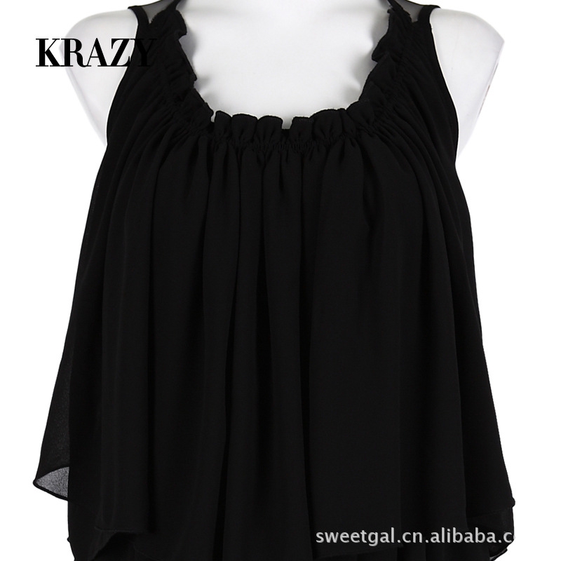 【商品名稱】Krazy名媛范兒性感薄紗露背層次感荷葉雪紡連衣裙
