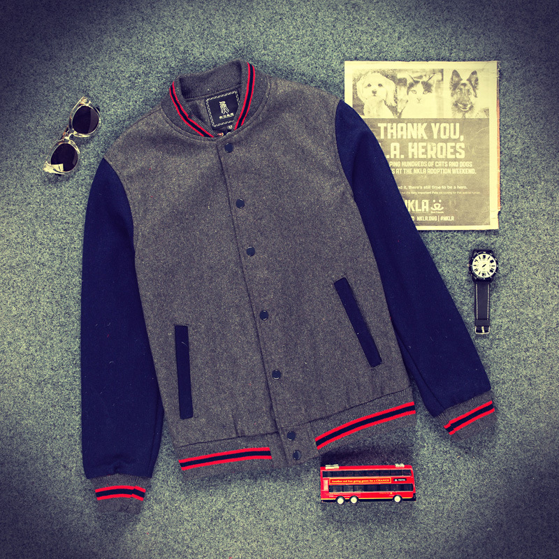 2015春裝 復古呢料夾克男 日系立領棒球衣 A73