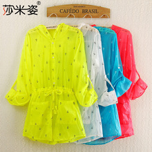 1603新款空調衫 長袖防曬衫船錨防曬衣透明款薄外套女沙灘防曬服