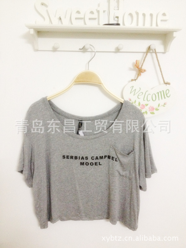 2013新款莫代爾字母口袋罩衫蝙蝠衫 短袖t恤背心批發