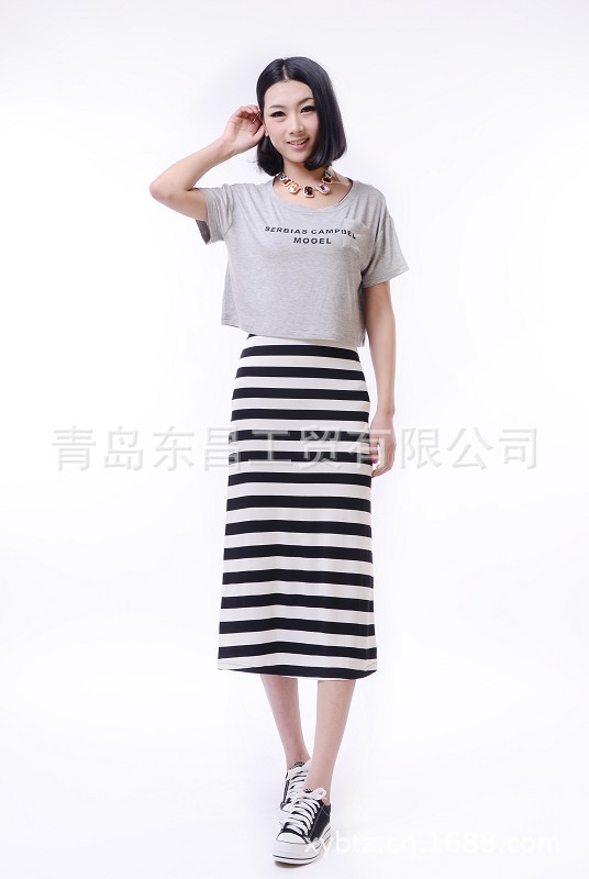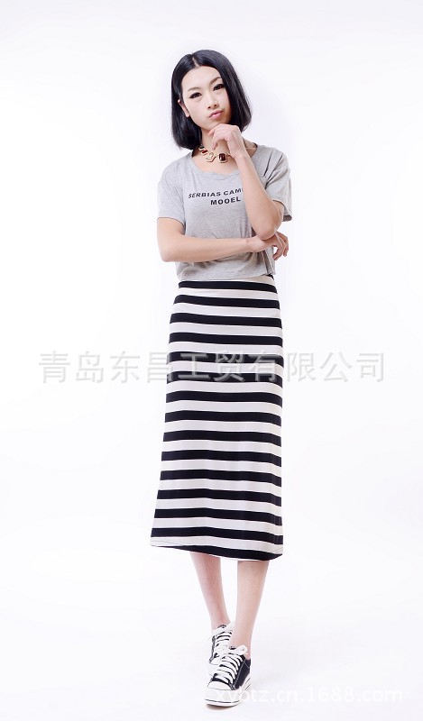 韓版新款百搭抽繩口袋裙開叉裙 長款半身裙A字裙 女裝 服裝批發