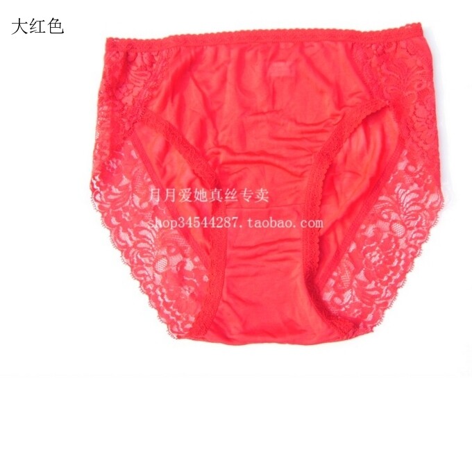 性感女士針織真絲內褲蕾絲真絲無痕三角褲100%桑蠶絲多色